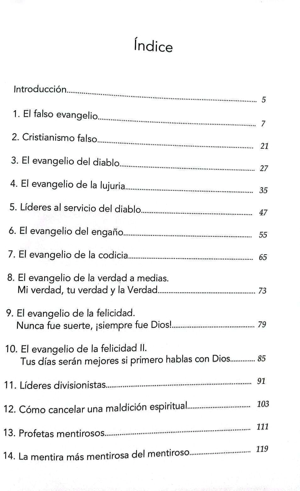 El falso evangelio y los profetas mentirosos es el libro que intenta desenmascarar las estrategias del diablo y revelar la verdad bíblica acerca de la Iglesia del Señor. Con la ayuda del Espíritu Santo lograremos detectar las señales de una iglesia falsa para no participar de las obras de las tinieblas.